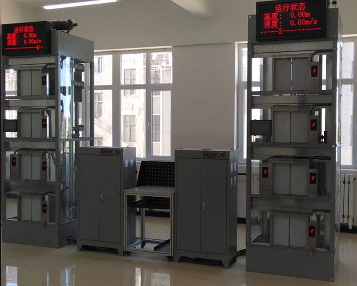 電梯控制技術(shù)綜合實訓裝置是專門為職業(yè)院校開設的電氣自動化、機電一體化、機械制造與自動化等相關專業(yè)而研制的,裝置根據(jù)智能建筑中升降電梯的機構(gòu)按照一定的比例縮小設計,所用設備、器件與實際電梯基本一致,采用槽鋼方管框架結(jié)構(gòu)整體設計,正面使用透明有機玻璃面板,融低壓電氣、PLC、變頻調(diào)速、智能人機、傳感檢測、視頻監(jiān)控、智能考核系統(tǒng)等于一體,實現(xiàn)智能電梯復雜的開關量控制、時序邏輯控制。通過該裝置的操作訓練可考核學生掌握智能電梯的裝調(diào)與維護綜合能力,如電梯呼梯盒的安裝、井道信息系統(tǒng)的安裝、平層開關檢測位置調(diào)整、門機機構(gòu)調(diào)整、電氣控制柜的器件安裝、接線、變頻器參數(shù)設置、PLC編程與調(diào)試、電梯群控功能調(diào)試、電梯故障排除、運行維護等,除了滿足專業(yè)實訓教學,還能開展技能考核以及職業(yè)技能競賽。