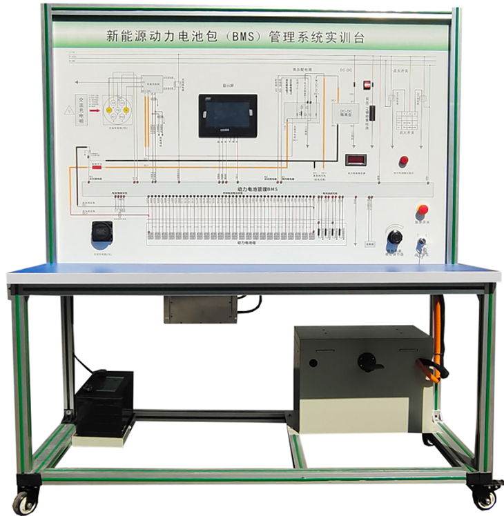 鋰電池管理診斷系統實訓臺,動力電池組及BMS管理系統實訓臺選用新能源車輛 磷酸鐵鋰 動力電池包,單體電池(3.2V20AH,共24串),帶CAN總線的一體機BMS電池管理系統,有被動均衡功能;真實地呈現了磷酸鐵鋰動力電池包核心零部件之間的連接控制關系、安裝位置和運行參數,以及高壓系統安全注意事項,并培養學員對磷酸鐵鋰動力電池包(BMS)故障分析和處理能力。適用于了解與驗證電動汽車的動力電池參數進行實時監控、故障診斷、SOC估算、短路保護、絕緣檢測、充放電控制、均衡等功能,并通過CAN總線的方式與帶CAN通訊的車載充電機進行信息交互,保障電動汽車高效、可靠、安全運行的BMS教學實訓實驗。
