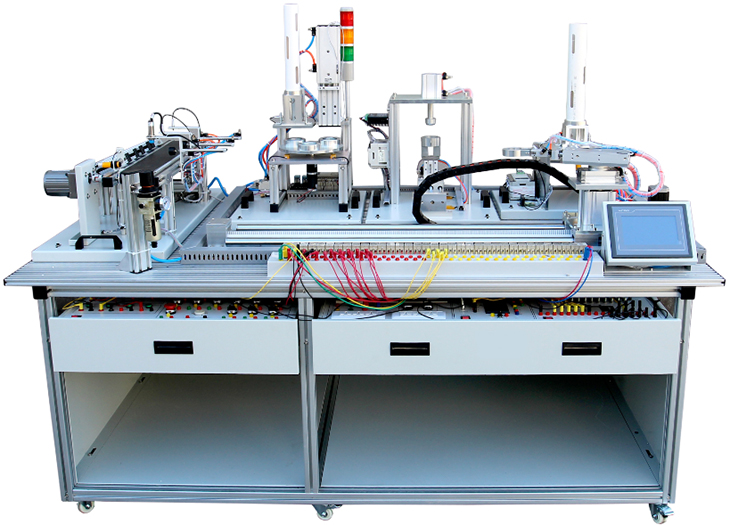 一體化自動生產線系統實訓裝置綜合應用了多種技術知識,有氣動控制技術、機械技術、傳感器技術、PLC控制技術、步進電動機位置控制和變頻技術等,模擬一個與實際生產情況十分接近的控制過程,可以提高學生的綜合技能。