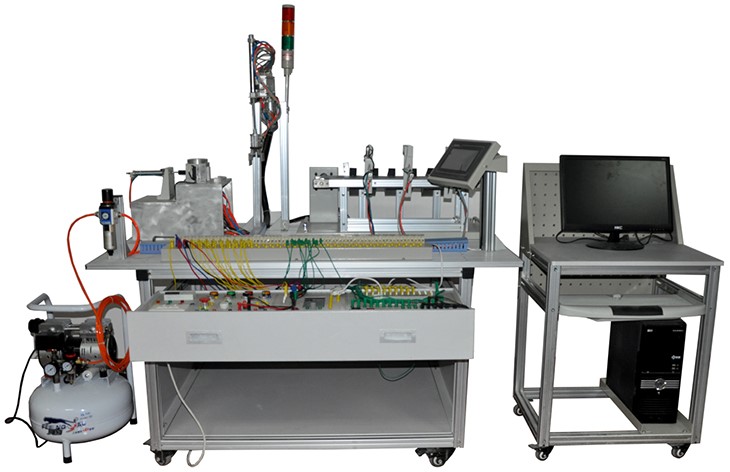 本設備主要包括實訓臺架、典型的機電一體化設備的機械部件、PLC模塊、變頻器模塊、按鈕模塊、電源模塊、模擬生產設備實訓模塊、接線端子排和各種傳感器等組成。整體結構采用開放式和拆裝式,實訓裝置用于機械部件組裝,可根據(jù)現(xiàn)有的機械部件組裝生產設備,也可添加機械部件組裝其他生產設備,使整個裝置能夠靈活的按教學或競賽要求組裝具有生產功能的機電一體化設備。