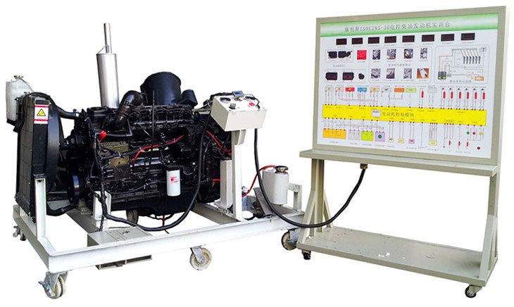 CA1125柴油發(fā)動(dòng)機(jī)總成、組合儀表、發(fā)動(dòng)機(jī)控制單元、散熱系統(tǒng)(水箱、風(fēng)扇、上下水管)、排氣系統(tǒng)、進(jìn)氣系統(tǒng)(進(jìn)氣軟管、空氣濾清器總成)、原車電路原理圖板及檢測(cè)端子面板、蓄電池、電源總開(kāi)關(guān)、燃油箱、油水分離器、油門踏板裝置、可移動(dòng)機(jī)臺(tái)架、臺(tái)架高溫及轉(zhuǎn)動(dòng)等部位加裝防護(hù)裝置等。